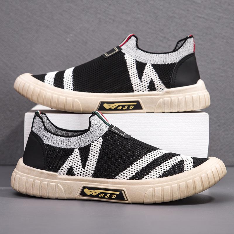 Лето 2025 года, дышащая мужская повседневная обувь, ленивая спортивная обувь, дышащая трендовая обувь для доски, новая легкая корейская версия, летающее плетение 44 чёрный