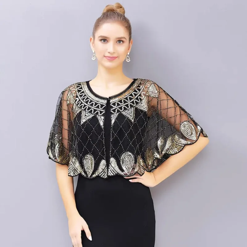 Лето 2025 г., новая сетчатая блестящая маленькая вечерняя модная верхняя одежда, весенний шик, укороченная верхняя ниша, тонкая шикарная шаль