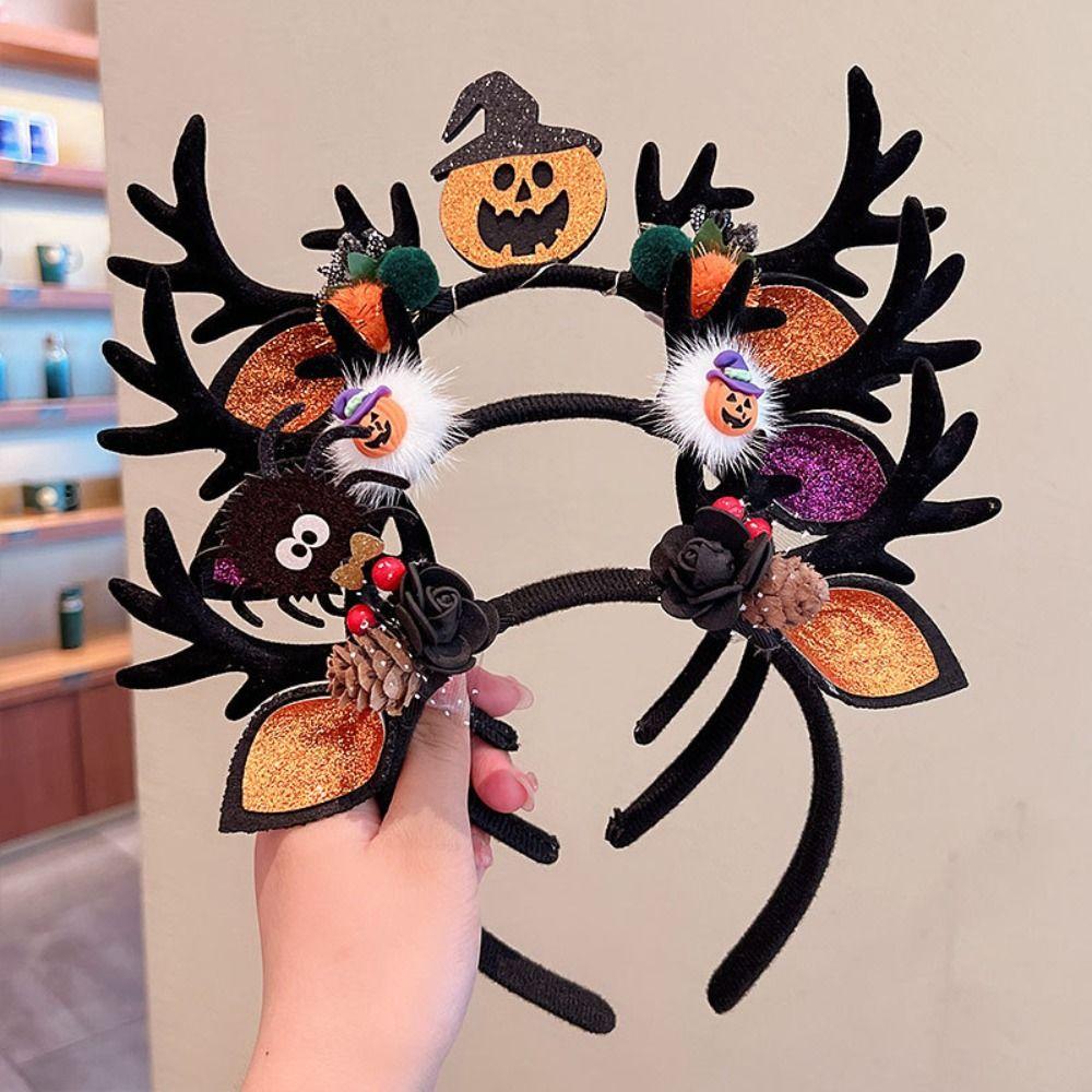 Летучая мышь паук плюшевый мяч бант корейский стиль повязки для волос женские обручи для волос Хэллоуин повязки на голову рога лося F