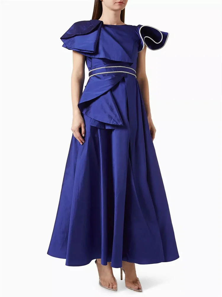Лидер продаж, вечернее платье-трапеция с круглым вырезом и рукавами с оборками, элегантное платье до пола с молнией на спине и поясом на талии, 2024