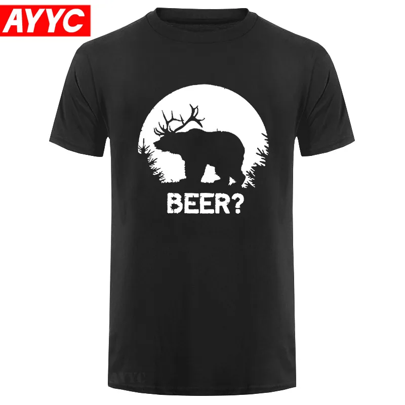Лидер продаж, модная летняя стильная Веселая футболка с изображением медведя пива оленя охотника, оленя, медведя, пива, подарок на день рожд...