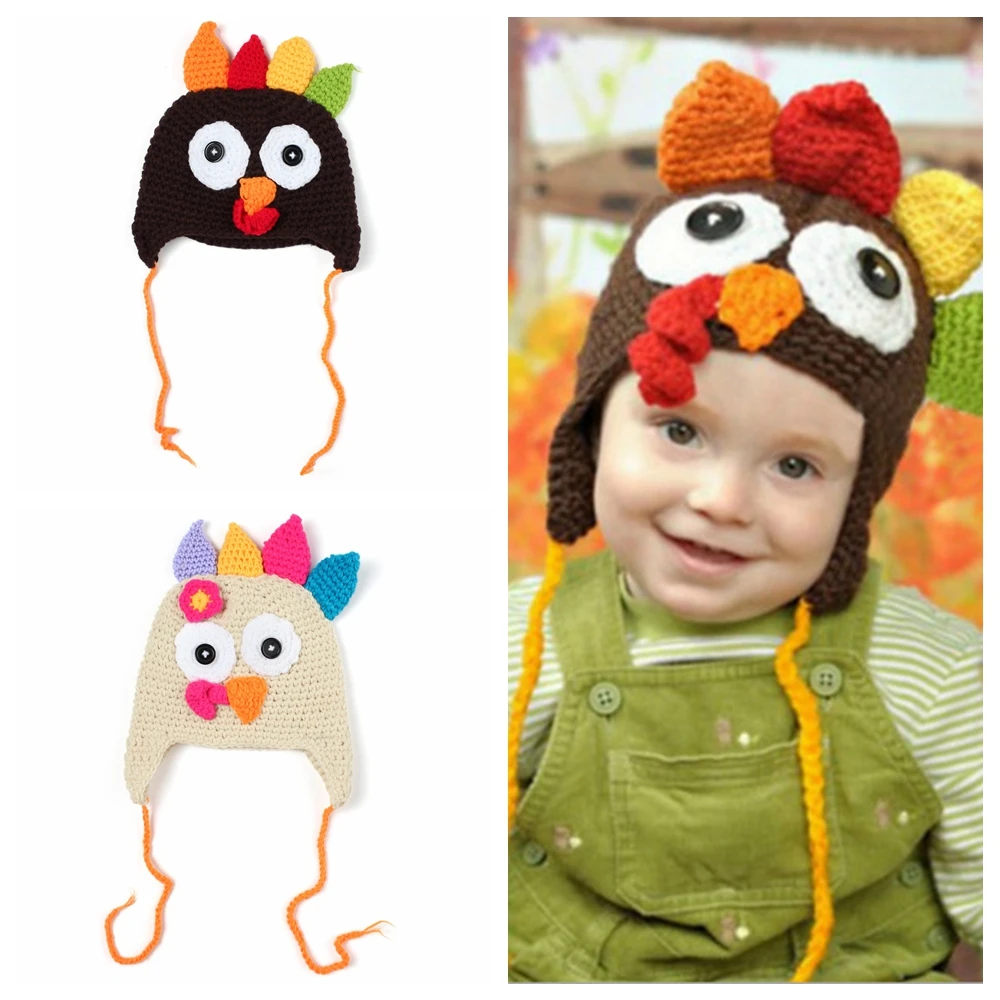 Лидер продаж, платье для девочки на День Благодарения крючком шапка для малышей вязаный Турция шапочки Головные Уборы Новорожденных Вязани...