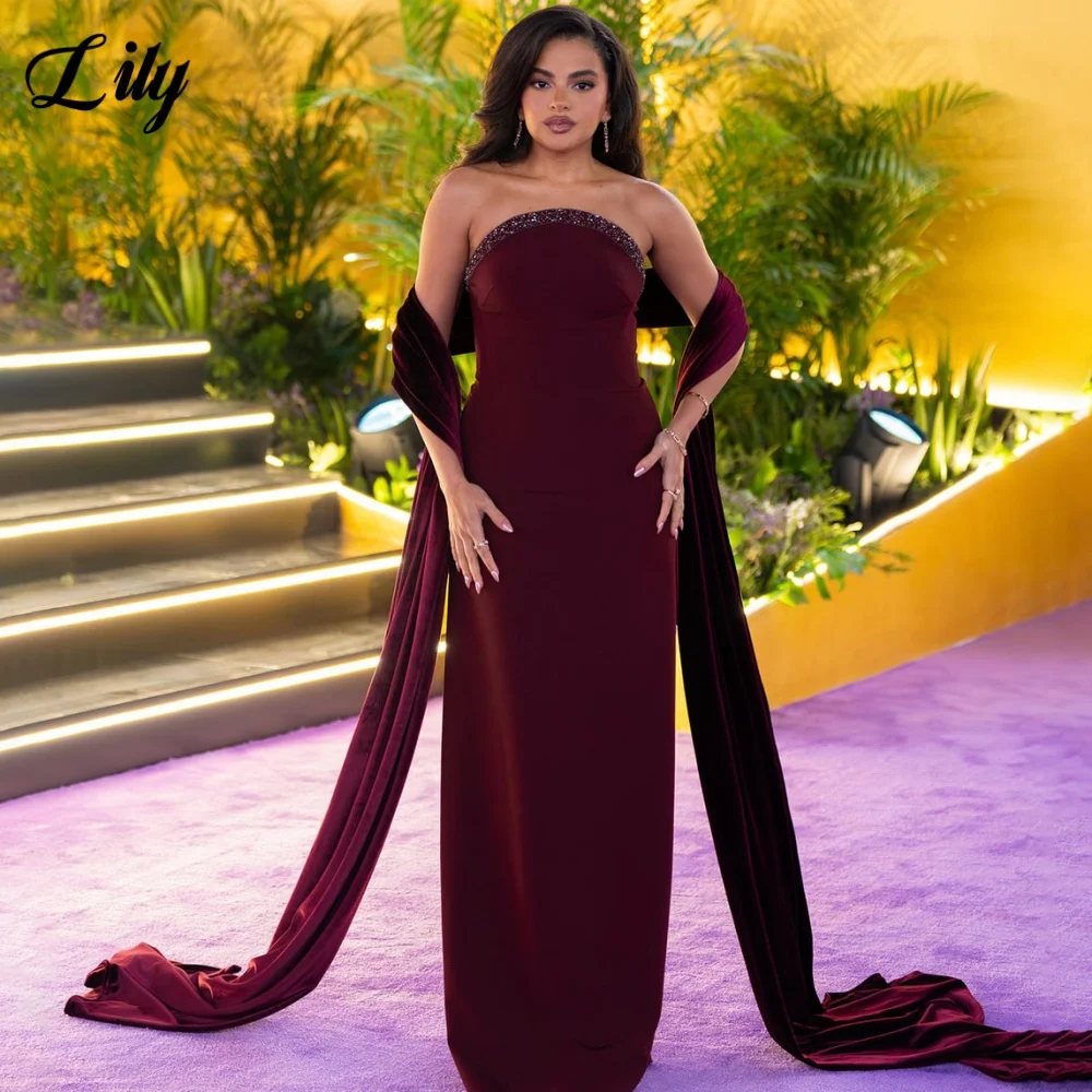 Лили Шикарные бордовые платья для выпускного вечера без бретелек Вечерние платья с пятнами Изысканные плиссированные детали Вечернее платье по индивидуальному заказу
