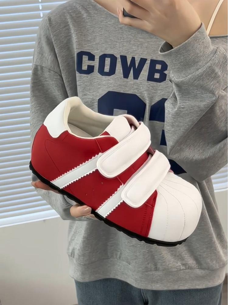 Липучка уродливые милые ракушечные немецкие тренировочные хлебные туфли женские 2025 новые универсальные с внутренней высотой для отдыха и спорта маленькие кеды 40 красный