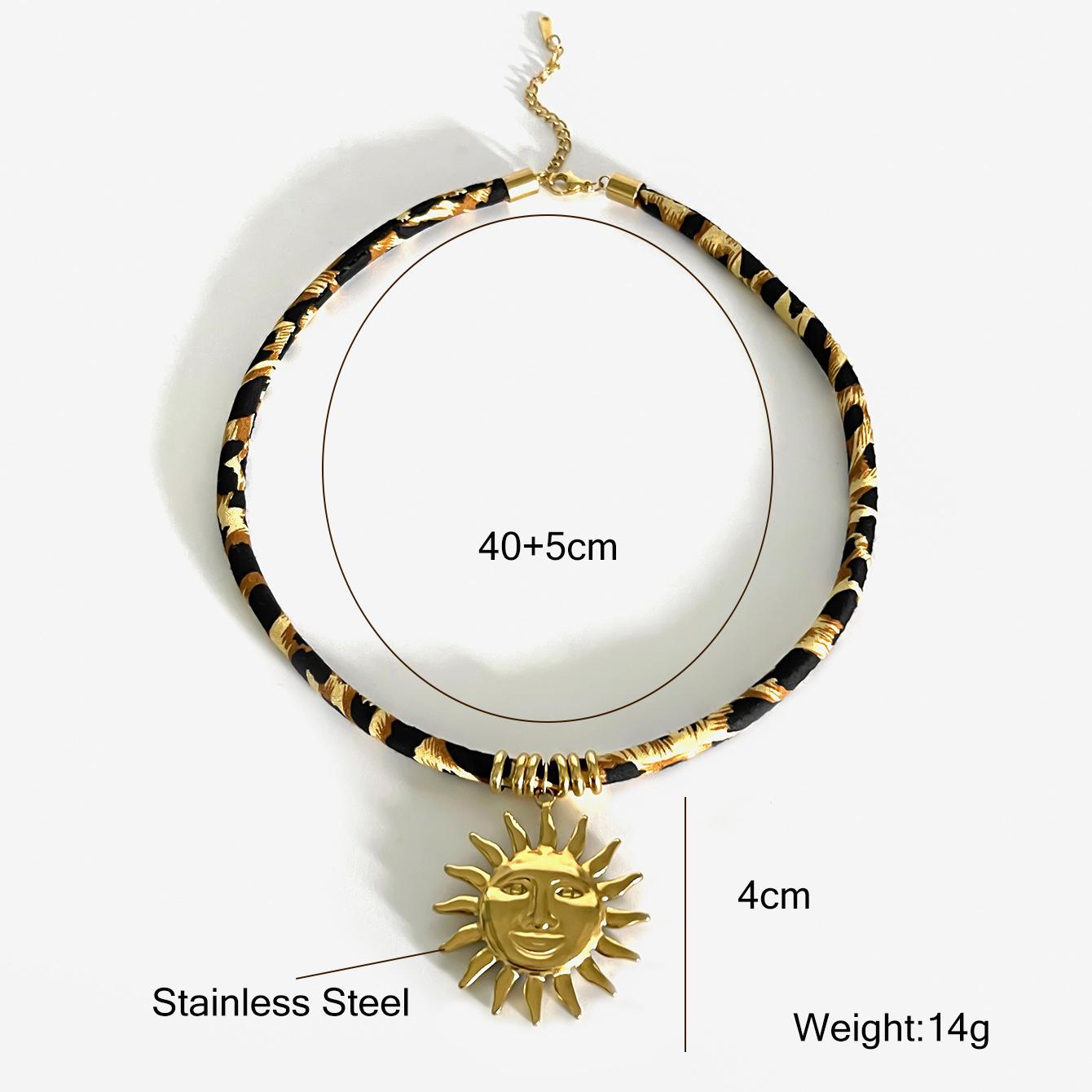 Личность Нержавеющая сталь Леопардовый полиэстер Цветок Сердце Солнце Капля Ожерелье воротник 18K PVD Покрытие Популярный подарок ювелирные изделия