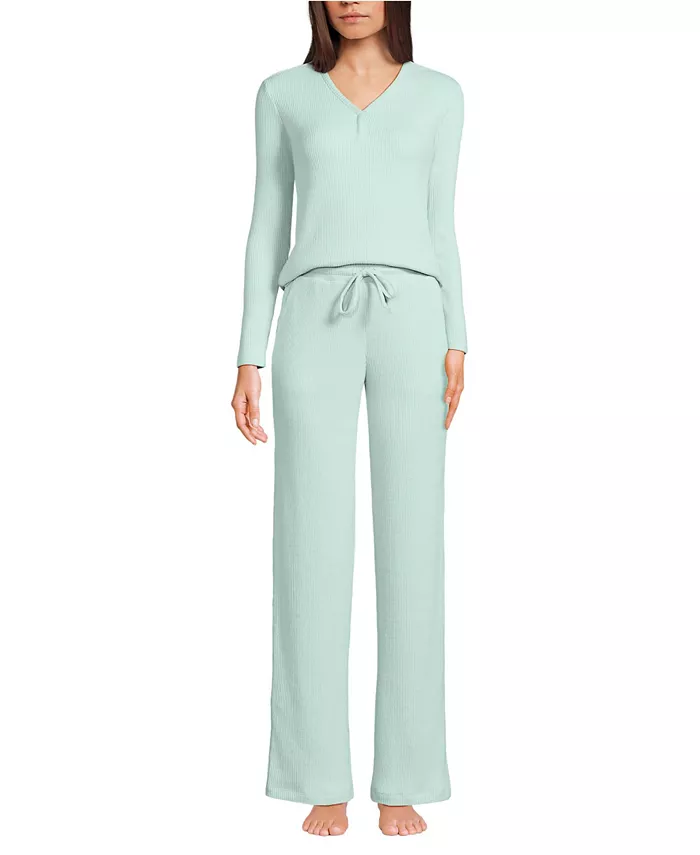 Женский уютный пижамный комплект из двух предметов: топ с длинными рукавами и брюки Lands' End, зеленый