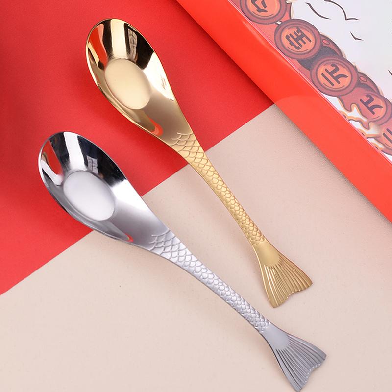 Ложка из нержавеющей стали, корейская посуда с длинной ручкой, утолщенная ложка для перемешивания льда золотой
