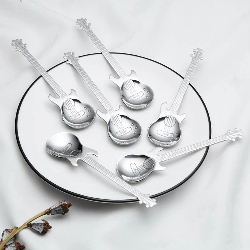 Ложки для гитары, кофе, 6 шт. в упаковке, креативные милые нержавеющая сталь для ложек чайных ложек, ложка для размешивания, в форме гитары (се...
