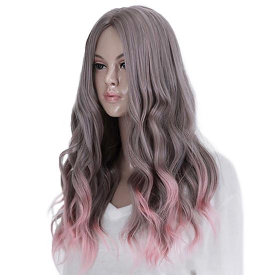 Лолита Микс Серый Розовый Центр Пробор Косплей Длинные Вьющиеся Волнистые Волосы Полные Парики