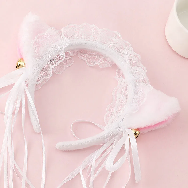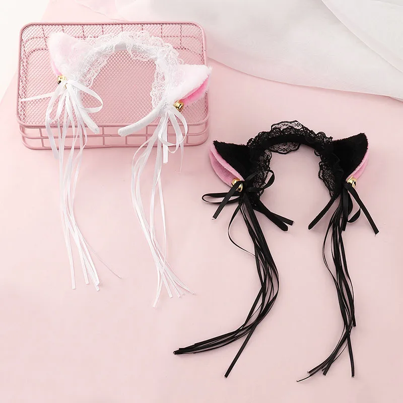 Лолита Шнуровка с бантиком из ленты, с головными повязками горничной Плюшевый игровой комплекс для кошек Ушная повязка на глаза для косплея для девочек Милый Колокольчик-кисточка Декор ободки для волос для костюмированной вечеринки по японскому аниме