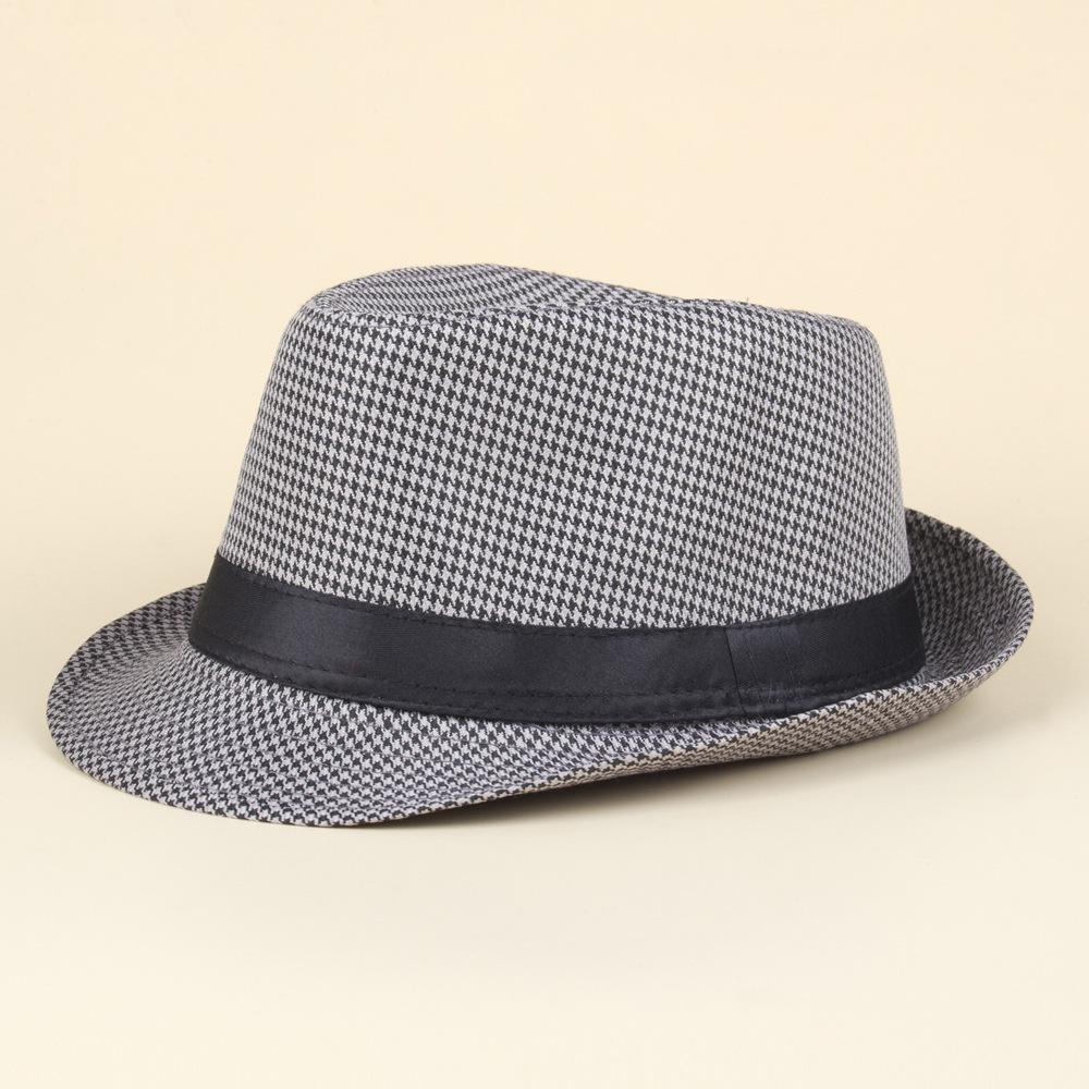 Лоскутная ткань Тысяча птиц Сетка Цилиндр Стиль Мужская шляпа Джаз Шляпа Джентльмена Модная повседневная шляпа Шляпа с узором в клетку M(56-58cm) светло-серый
