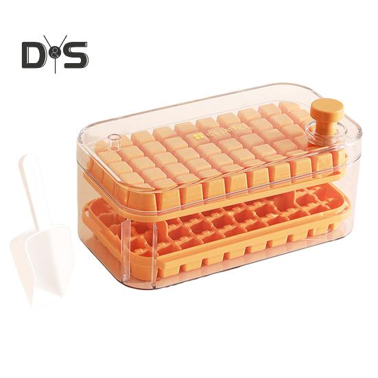 Лотки для льда с контейнером для льда Лопатка для льда 100/200 ячеек Штабелируемые формы для льда для морозильника Одно нажатие Легкое снятие льда для коктейлей Виски Сока 100Grid оранжевый