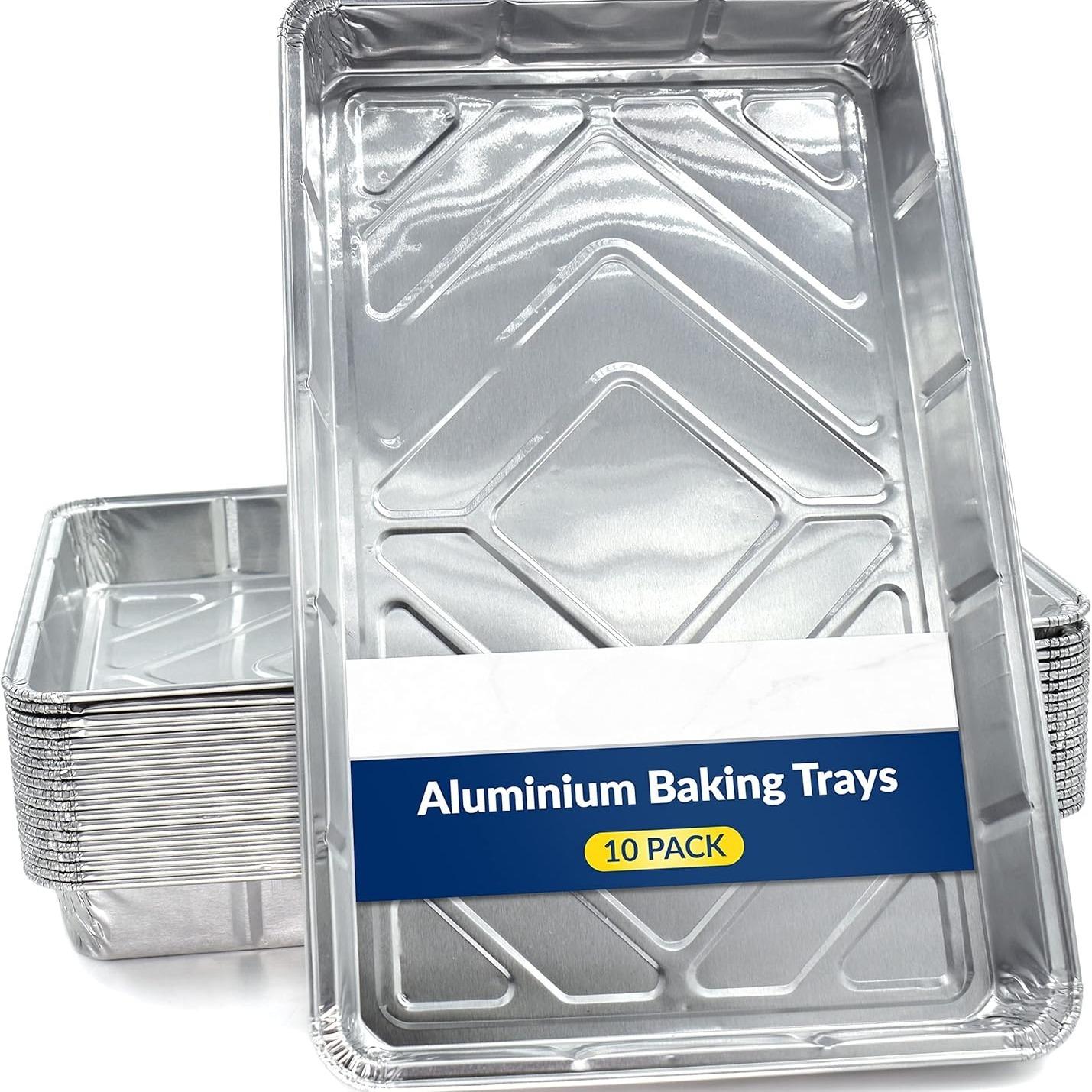 Лотки из алюминиевой фольги - одноразовые контейнеры из фольги, большие формы для запекания, жарки, варки, жарки на гриле, барбекю и хранения продуктов 10 pack