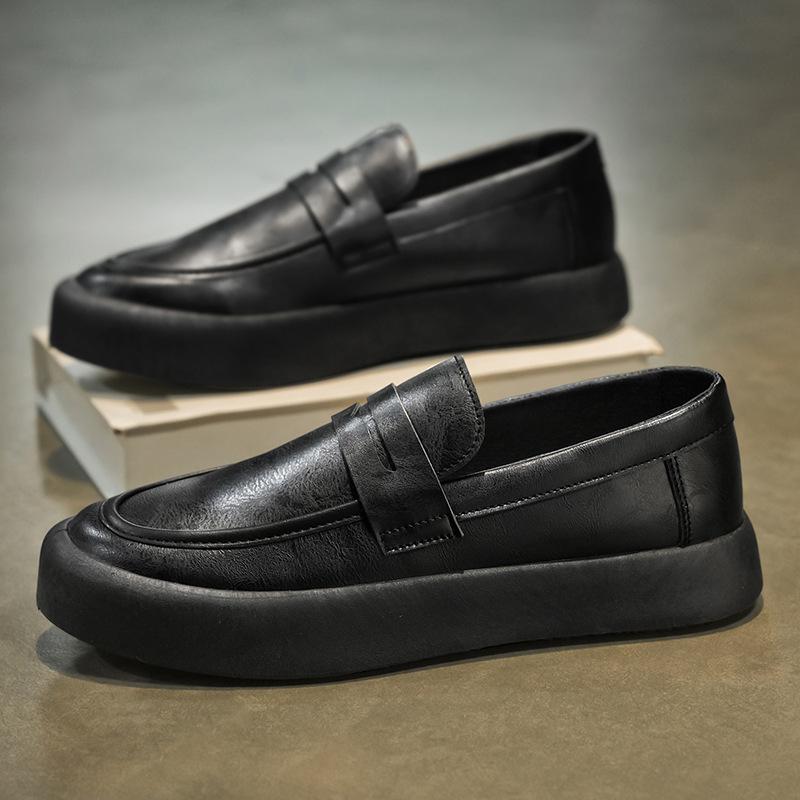Лоферы Мужские Кожаные Туфли на Толстой Подошве Британский Стиль Черные Формальные Туфли Модные Роскошные Слипоны Повседневные Туфли Мужские Большие Размеры Кроссовки 39 чёрный