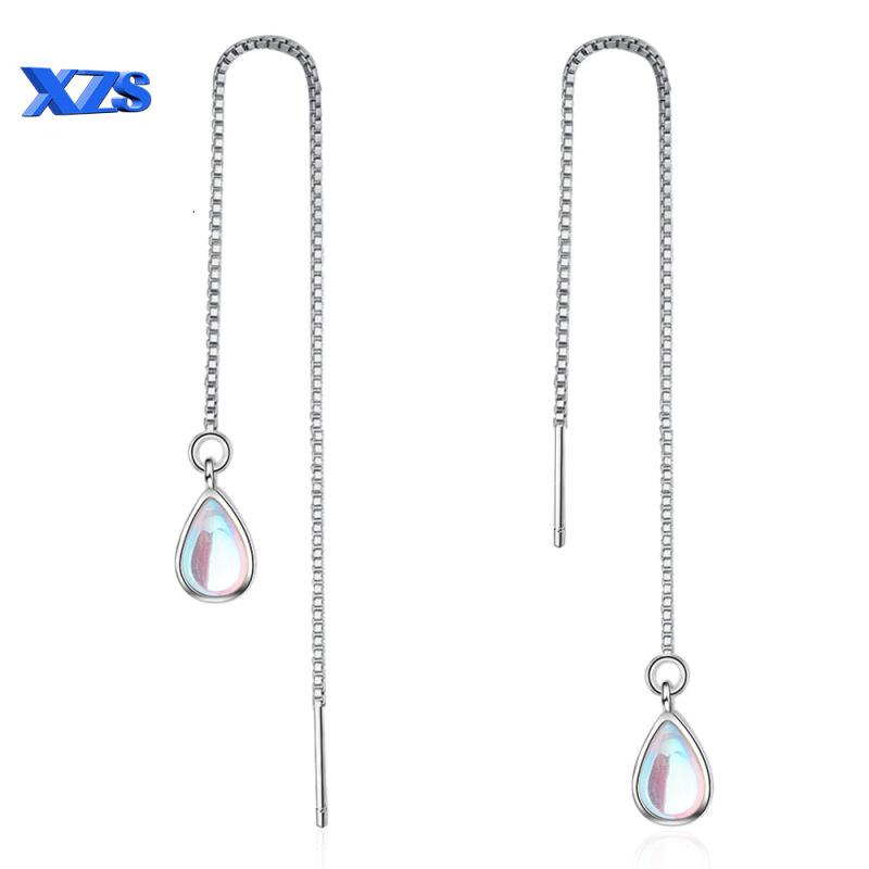 Лунный камень Вода Капля Ушные Нити Серьги Женский Длинный Стиль Кисточка Супер Бессмертные Украшения Ушные Украшения Простые Растянутые Камни Персонализированные Серьги Ухо