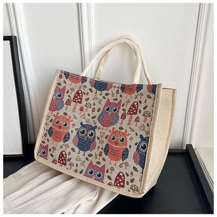 Льняная модная сумка-тоут, женская милая нишевая холщовая сумка, мультяшная повседневная сумка для бэнто хаки