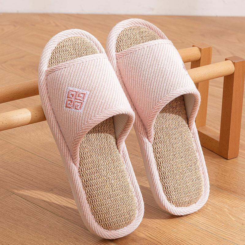 Льняные тапочки женские парные летние домашние для офиса на четыре сезона хлопково-льняные для деревянного пола весенне-осенние тапочки мужские 40-41 Suitable for 39-40 розовый
