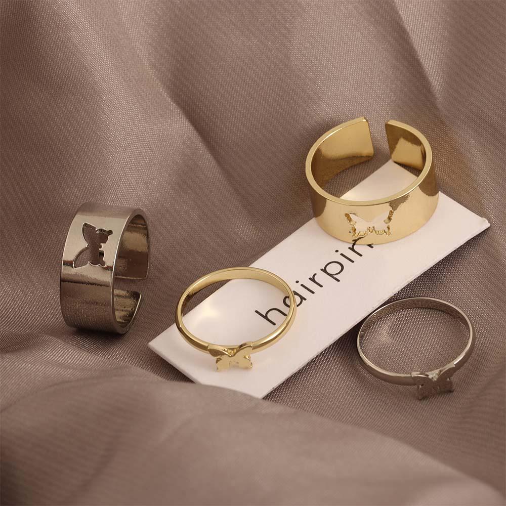 Любовник Винтаж Мужчины Женщины Медь Бабочка Кольца Модные Ювелирные Изделия Открытые Кольца Набор Парных Кольца