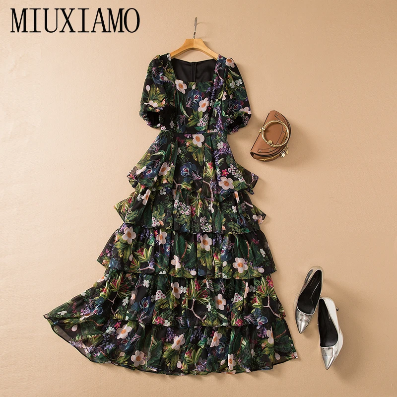 Женское платье с коротким рукавом MIUXIMAO, Элегантное Длинное Платье с квадратным вырезом и принтом, весна-лето 2022