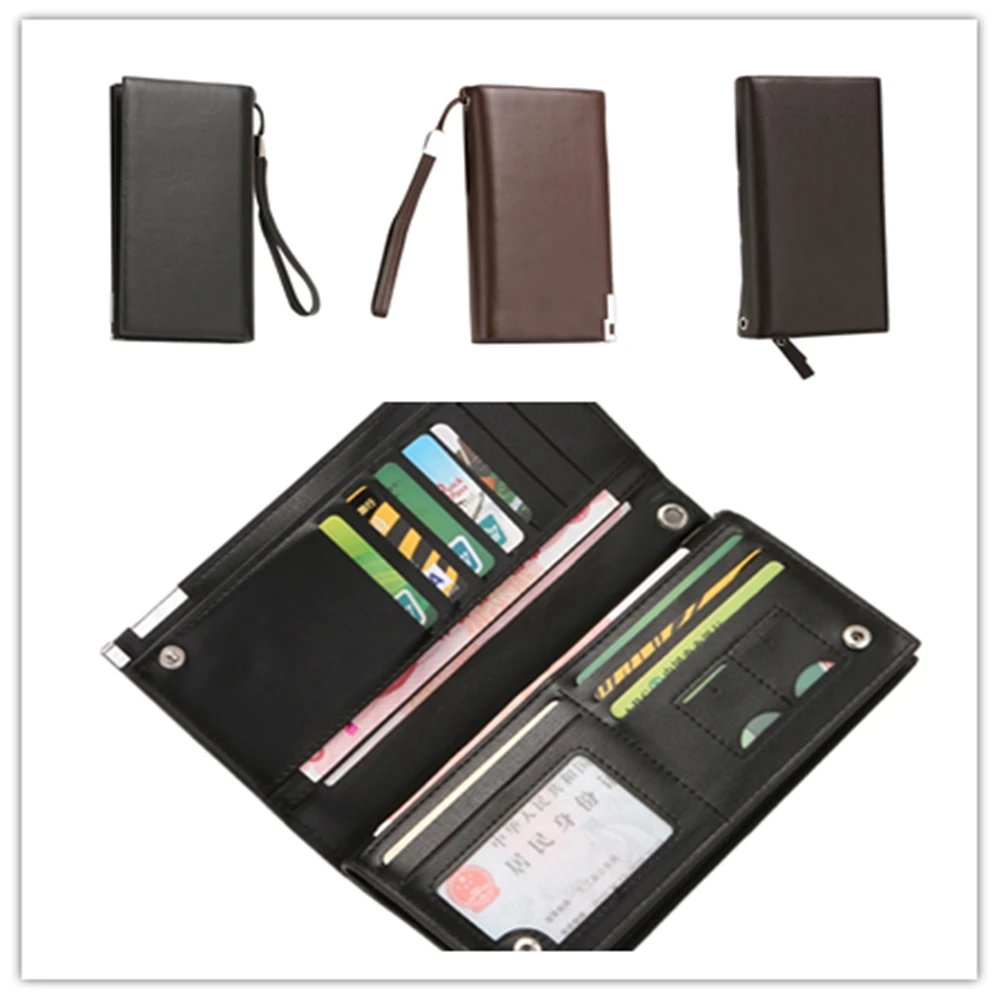 AA Men Fashion Bifold Coin Purse Long Zipper Solid Color Wallet with Lanyard Great Designed PU Leather Portable Card Pack