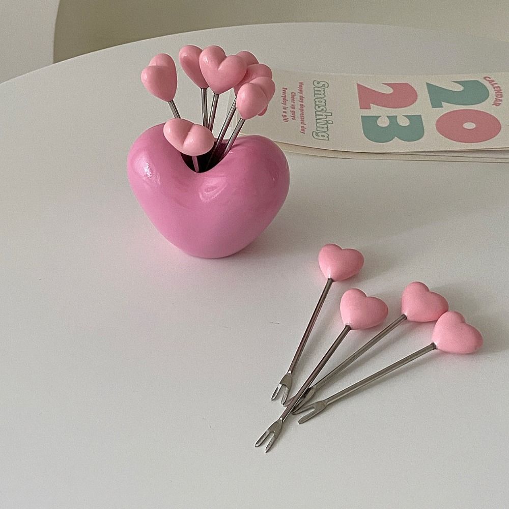Любящее Сердце Любовь Фруктовые Вилки Набор Пластиковых Вилок Из Нержавеющей Стали Десерт Торт Вилка Дети