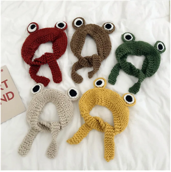 Лягушка Вязаная Шерстяная кепка на осень-зиму, с милыми ушками, Защитный колпачок для учащихся повседневное украшение шляпа комплект из мил...