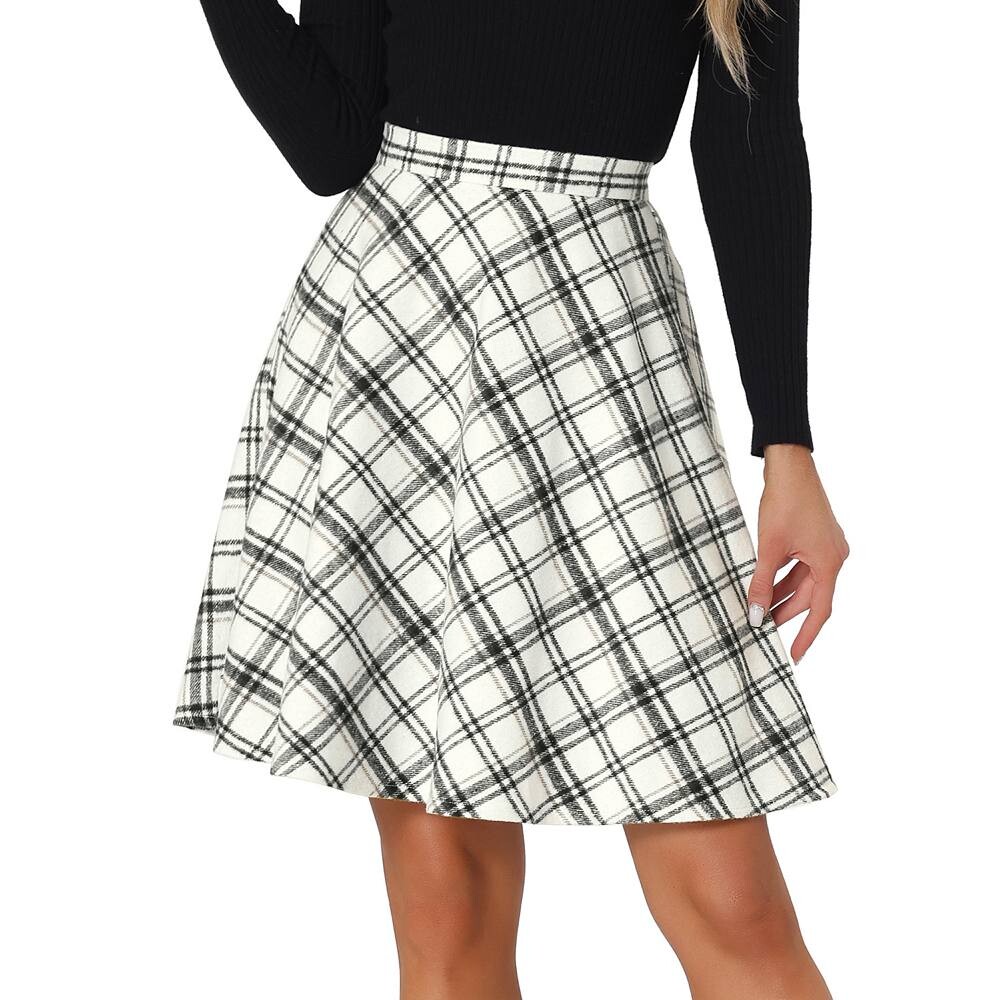 Женская клетчатая эластичная талия длиной до колена камвольная юбка трапециевидной формы ALLEGRA K, белый