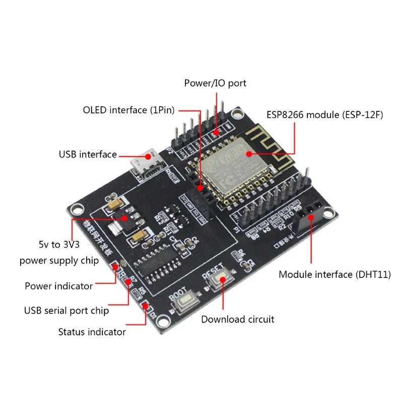 Макетная плата ESP8266 IoT + плата DHT11 для измерения температуры и влажности + oled дисплей 0,96 дюйма, программирование SDK, модуль Wi-Fi, маленькая плата