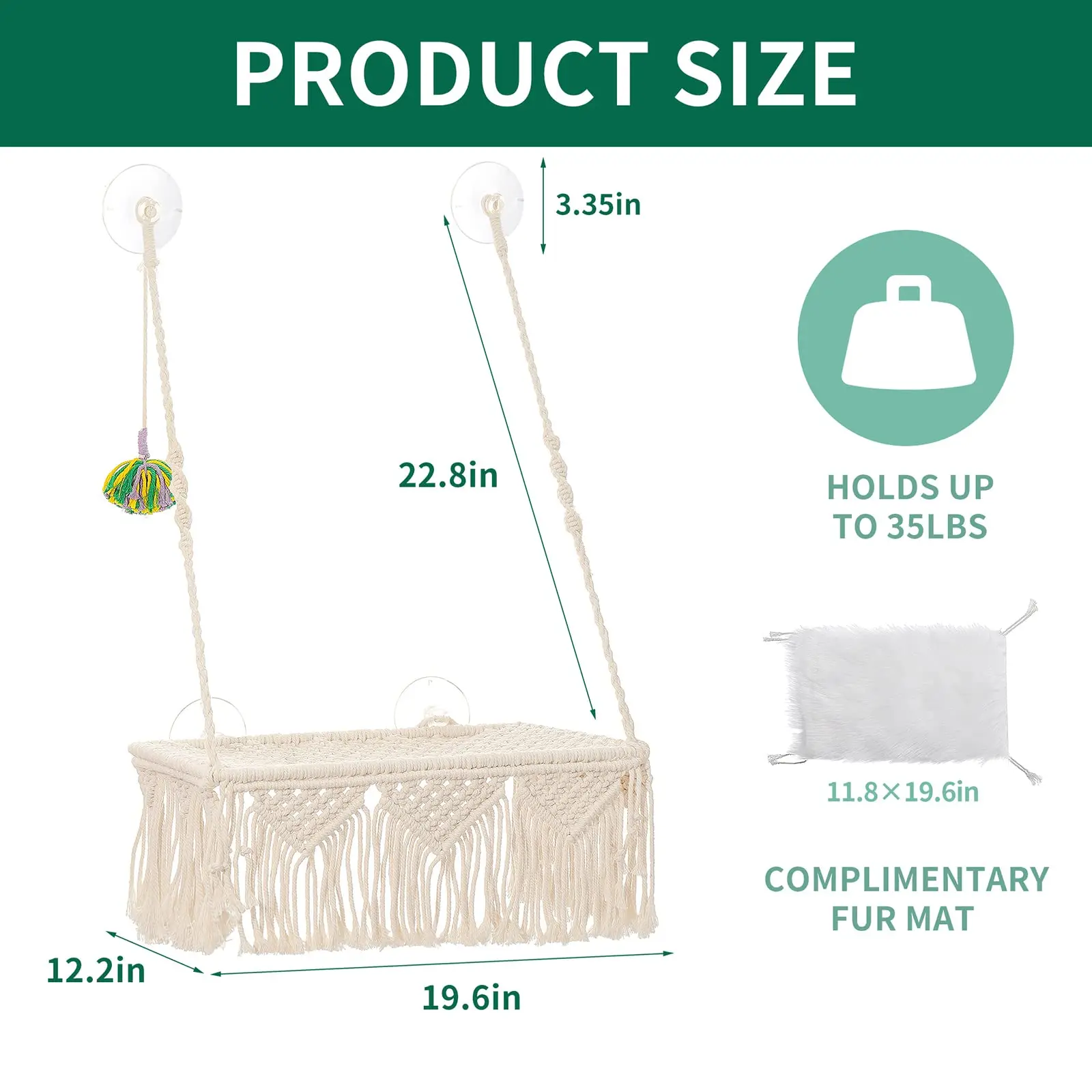 Макраме, кошка, окошко, окунь, гамак для кошек в стиле бохо для дома, безопасная компактная подвесная полка для кошек с кисточкой, вмещает до ...