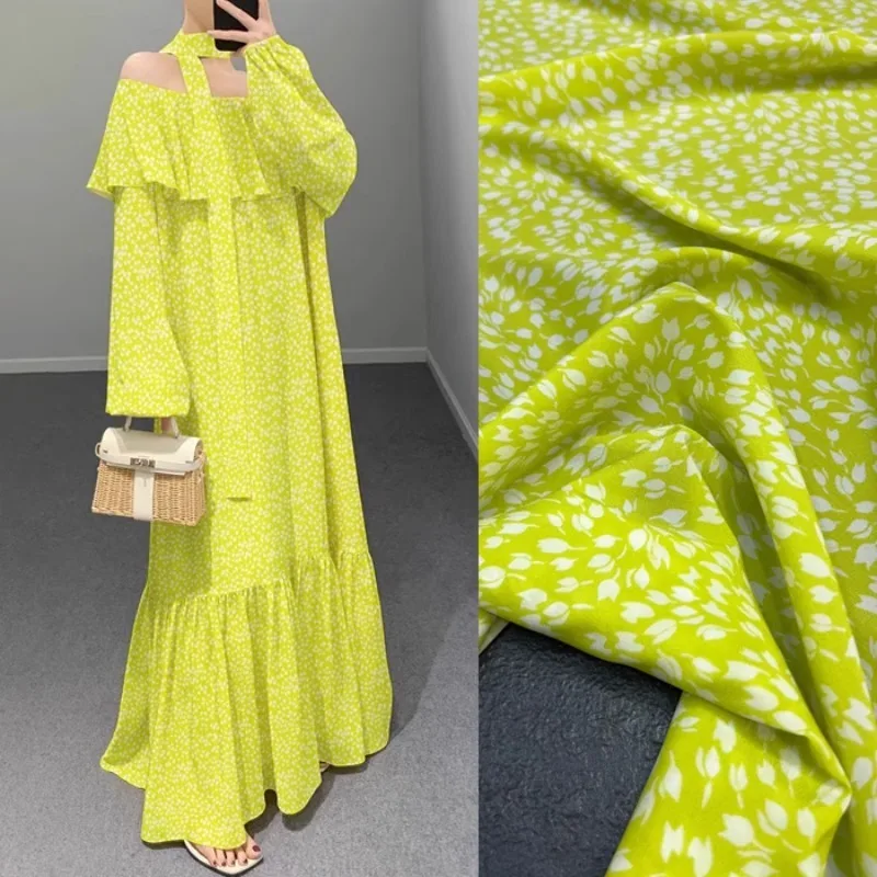 Маленькая белая цветочная печать, свежая зеленая шелковая крепдешинная ткань для шитья своими руками, мягкое летнее платье, брюки, юбка, пижама R2531