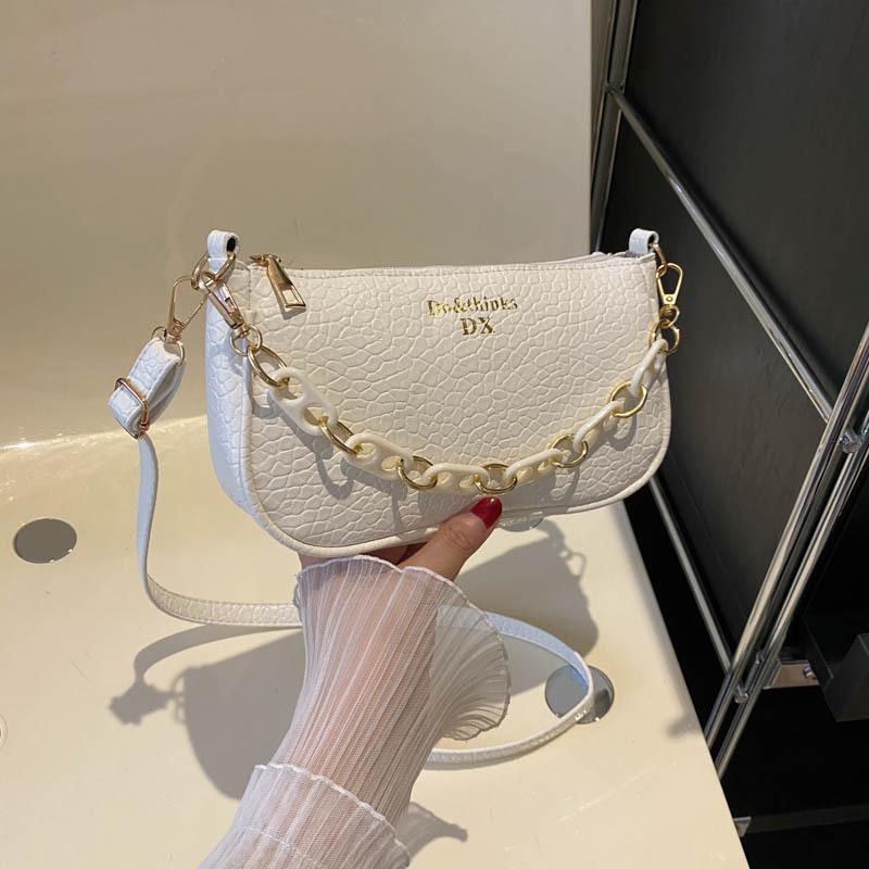 Маленькая женская сумка 2024 года, летняя новая корейская версия, модная простая сумка на одно плечо с цепочкой, ретро-мессенджер, маленькая квадратная сумка белый