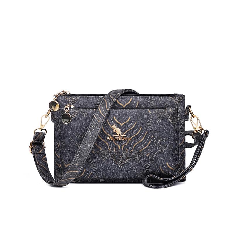 Маленькая квадратная женская сумка через плечо из мягкой кожи для мобильного телефона чёрный
