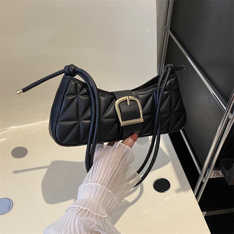 Маленькая квадратная сумка зарубежной моды 2024 года, летняя новая однотонная персонализированная женская сумка через плечо, большая вместимость, вышитая нить, сумка под мышкой чёрный