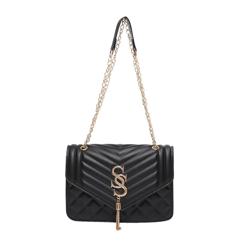 Маленькая квадратная сумка с цепочкой и ромбом, женская, весна-лето 2024, новая мода, простая трендовая сумка через плечо под мышкой чёрный