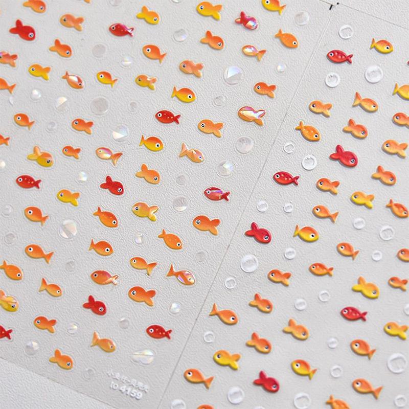 Маленькая красная рыбка, желе, летняя золотая рыбка, карп, океан, пляж, русалка, море, блестящий маленький кои, мягкие рельефные наклейки для дизайна ногтей, маникюрные наклейки