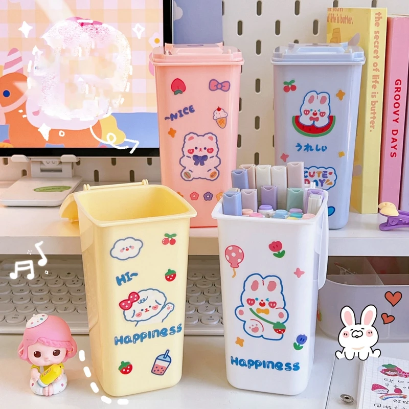 Маленькая мусорная корзина, настольный милый мультяшный держатель для ручек с крышкой на столе, креативная емкость для хранения в домашних ...