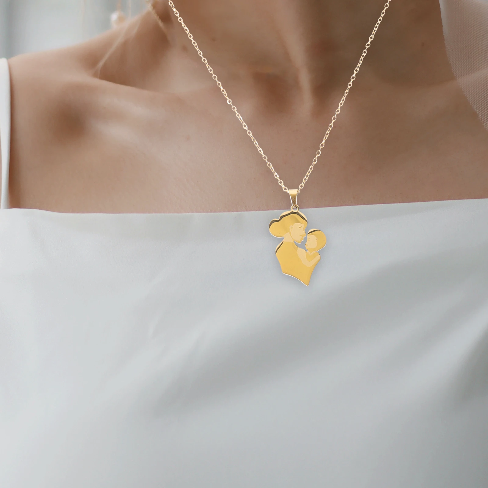 Parent Child Necklace Golden Mom Son Clavicle Gifts Charm Pendant for Mother's Day Necklace Stylish Design Elegant Fashion