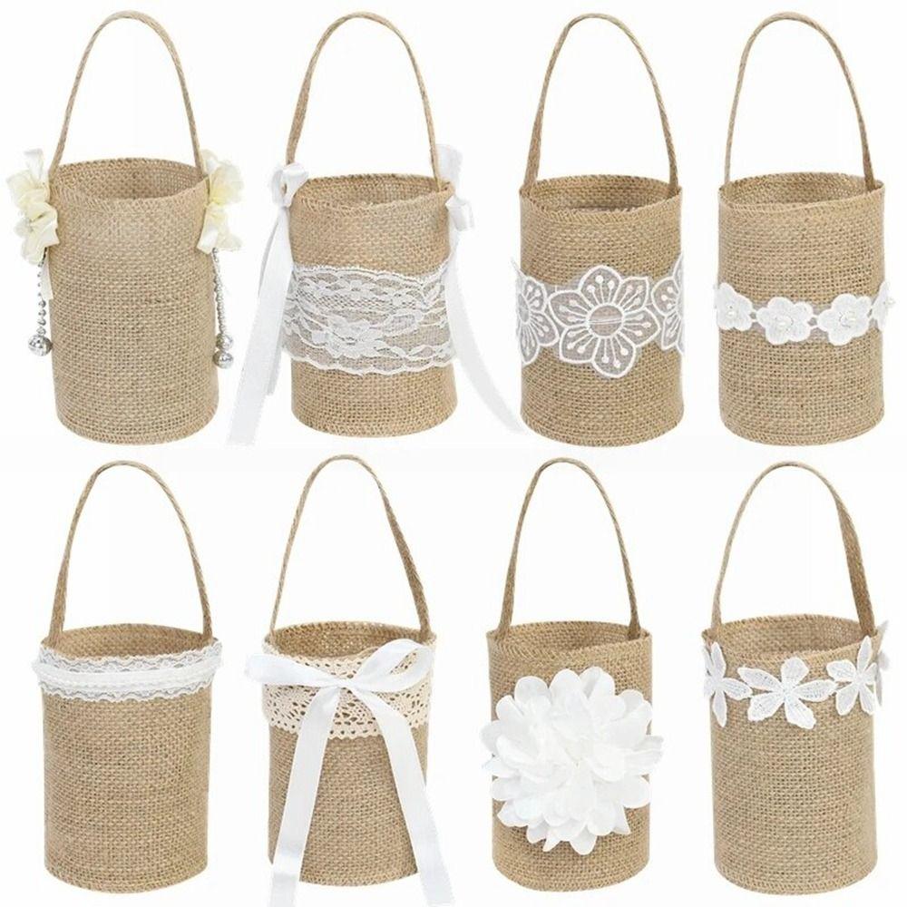 Маленькая свадебная сумка для хранения из мешковины, переносная кружевная цветочная подвесная корзина из мешковины для цветов, конфет