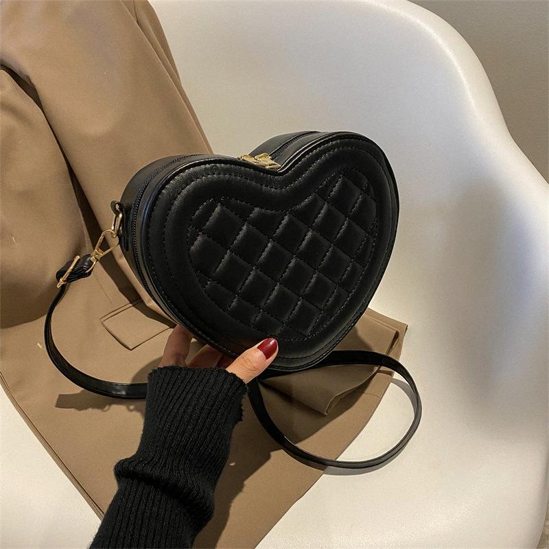 Маленькая сумка из ромбовидной вышивальной нити, женская летняя новая популярная модная сумка-мессенджер на цепочке, простая повседневная сумка в форме сердца чёрный
