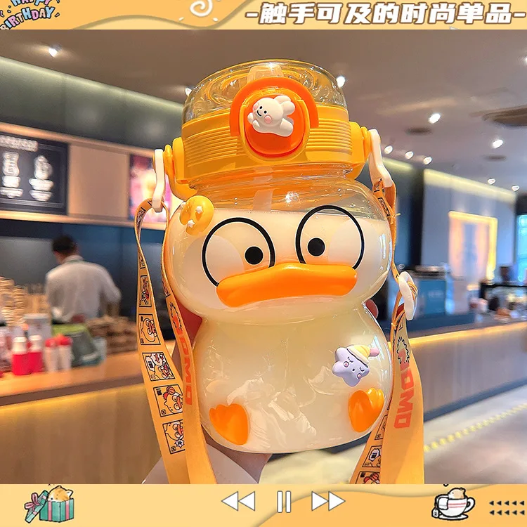 Маленькая чашка с желтой уткой, женская летняя большая цветная чайная чашка для девочек с соломинкой, детский чайник, симпатичная чашка CLH @ 8