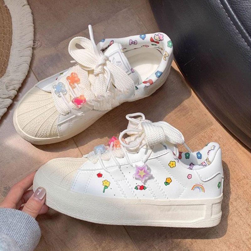 Маленькие белые туфли Женские Весна и Осень Новые Нишевые Плоская подошва Модные Универсальные Студенческие Повседневные Кеды Женские 40 белый