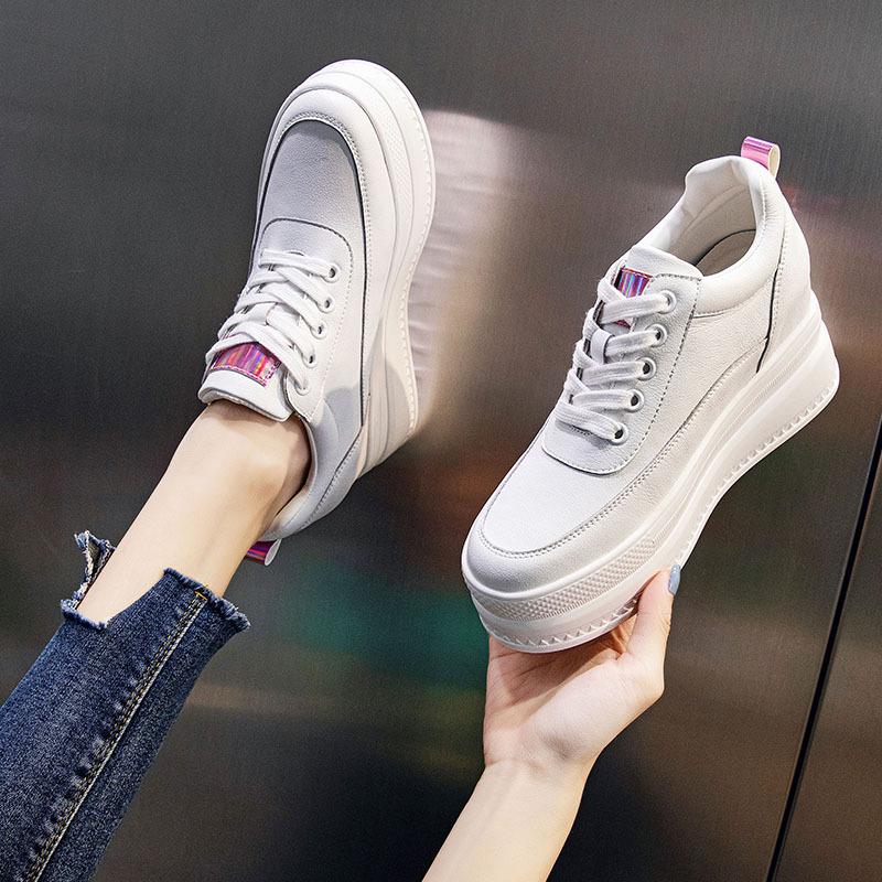 Маленькие белые туфли из натуральной кожи. Летние тонкие женские туфли. Увеличенная внутренняя часть. 8 см. Сетка. Толстая подошва. Дышащие полые повседневные кроссовки.