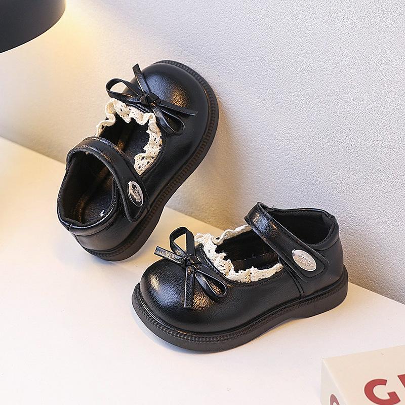 Маленькие кожаные туфли для девочек весна и осень новая классическая черная принцесса стиль кружево одинарные туфли маленькая девочка темперамент мягкая подошва повседневная обувь 20 чёрный