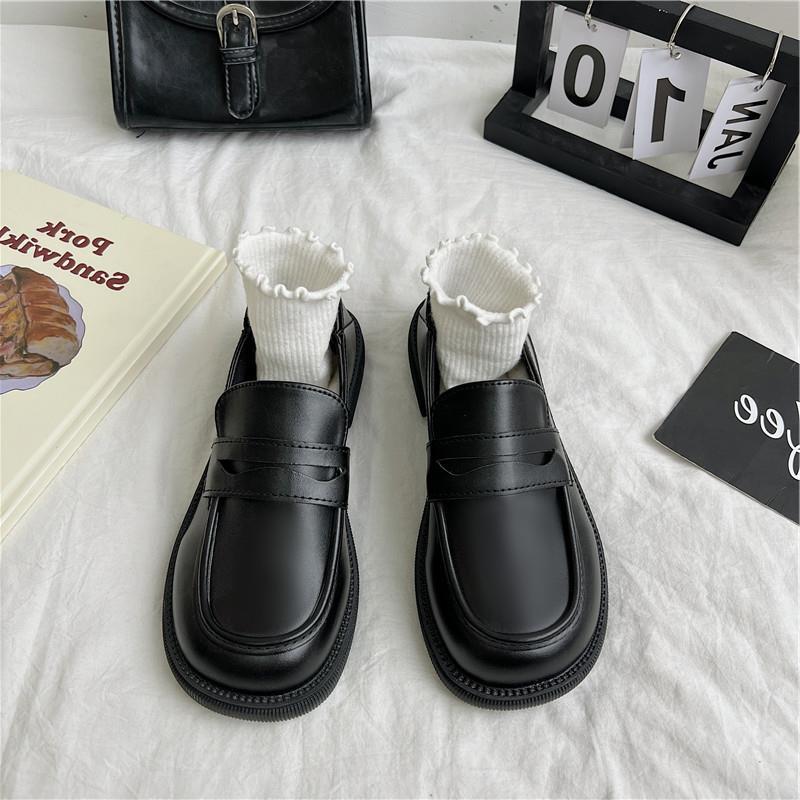 Маленькие кожаные туфли на плоской подошве, женские туфли в британском стиле, осенние туфли в японском стиле, новые туфли-лодочки, одна педаль, люблю моду черного цвета 35 чёрный