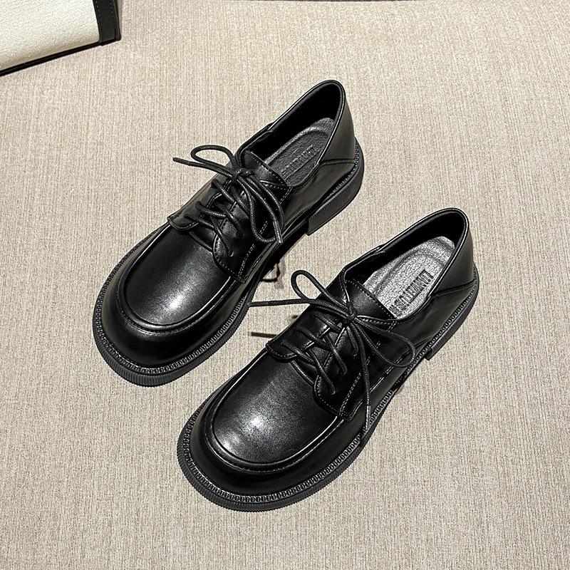Маленькие кожаные туфли на шнуровке, женские туфли в британском стиле, черные женские туфли на толстом каблуке и толстой подошве, осенне-зимние новые женские одинарные флисовые туфли