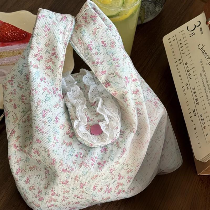 Маленькие милые сумочки в корейском стиле с цветочным принтом на весну и лето, милые кружевные сумки на запястье