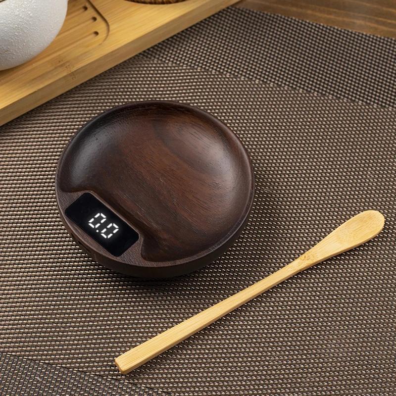 Маленькие цифровые кухонные весы из цельного дерева с точностью до грамма для чайных листьев, круглые кофейные зерна, электронные весы с зарядкой