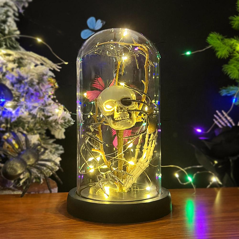 Маленький Ночной Фонарь Хэллоуин Светящаяся Роза Скелет Паук Лампа Украшение Головы С Настольным D Z3T0