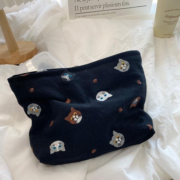 Маленький белый кролик японская вышивка кошка косметичка - милый хлопково-льняной клатч и кошелек для монет чёрный