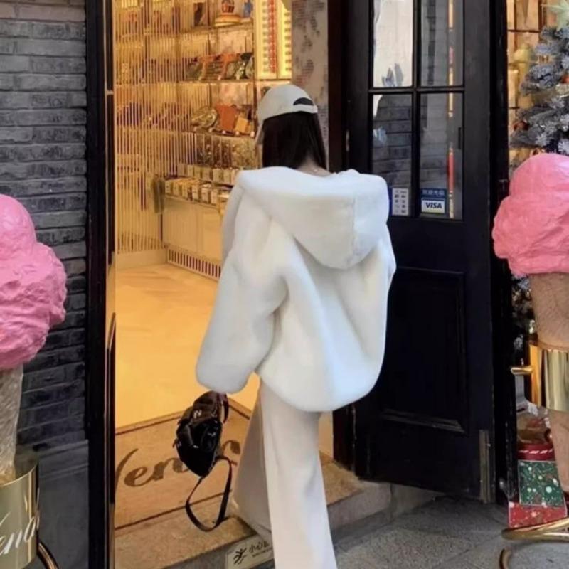 Маленький белый медвежонок экологичная кожа женское зимнее худи свободного кроя с капюшоном утолщенное нежное омолаживающее для пожилых ленивый ветер топ пушистое пальто L